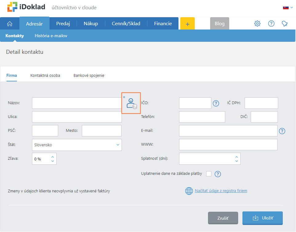 Ak si chcete overiť, či je váš obchodný partner spoľahlivý, nemusíte už klikať na ikonu vedľa poľa IČ DPH. iDoklad vykoná overenie automaticky po zadaní údajov firmy. Vďaka novej ikone hneď spoznáte, či je Váš obchodný partner spoľahlivý alebo od neho máte dať radšej ruky preč.