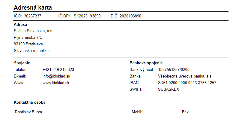 K takým údajom patrí napríklad meno a priezvisko, adresa, e-mail a telefónne číslo, IČO a ďalšie.