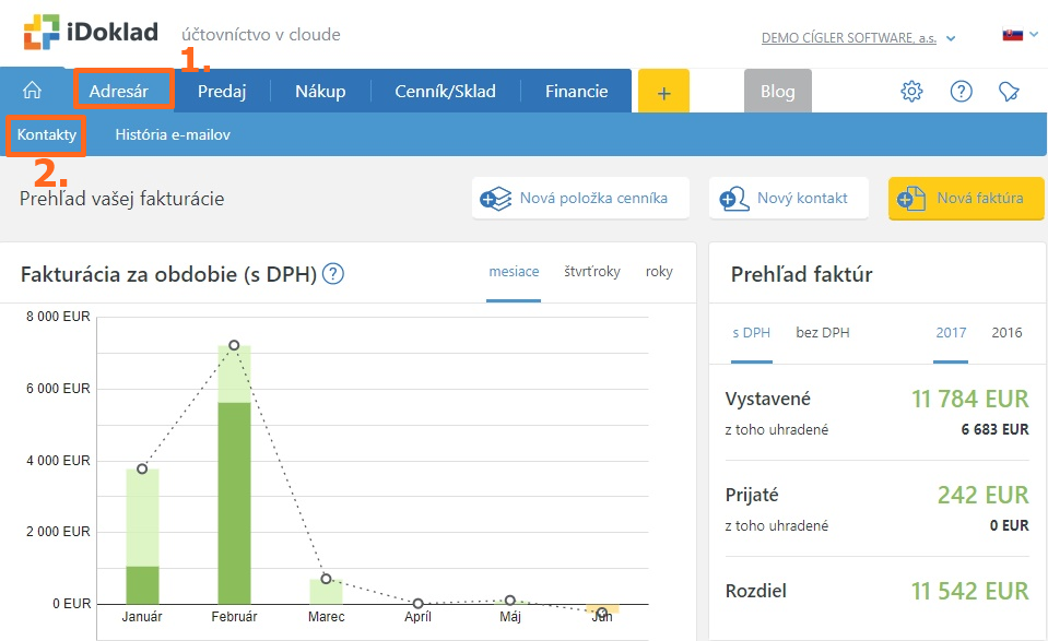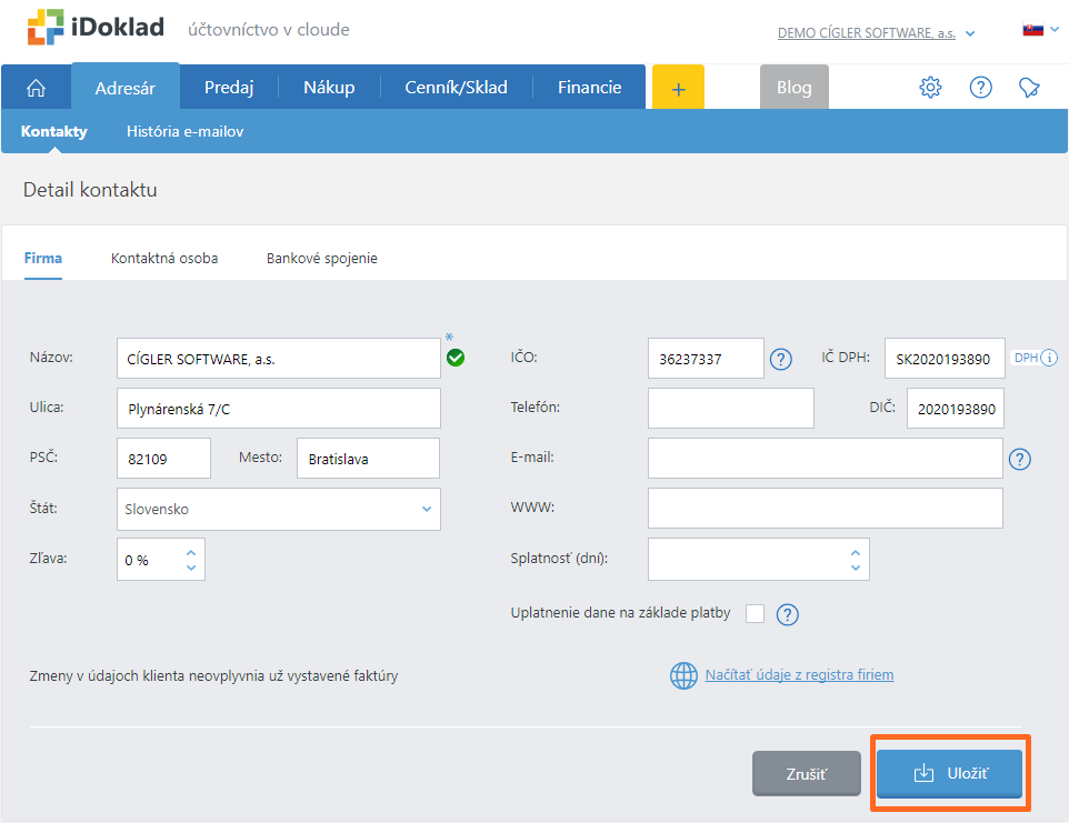 Uložiť kontakt do adresára iDoklad