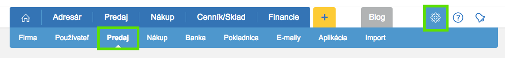 Začnite kliknutím na ikonku ozubeného kolieska v pravom hornom rohu a z ponuky vyberte Predaj.