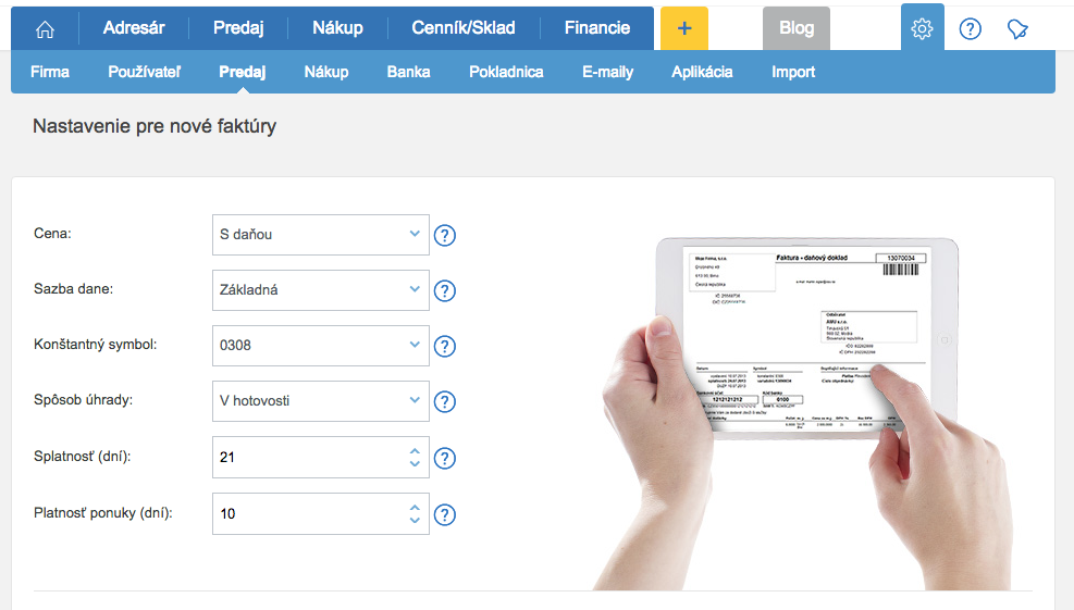 V treťom diele seriálu o Nastavení iDokladu sa pozrieme na sekciu Predaj a Nákup. Dozviete sa, ako si nastaviť splatnosť, upomienky aj zástupné znaky pre číselný rad. Pri pravidelnom vystavovaní tak ušetríte množstvo času, ktorý môžete venovať svojmu podnikaniu. Najskôr si pozrite stručné video a potom sa pustíme do podrobného popisu jednotlivých kolónok.