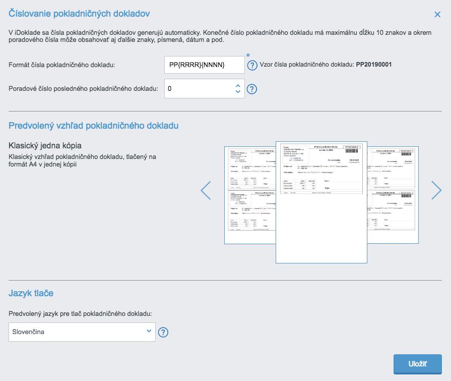 iDoklad - Nastavenie PokladnicaPre každú pokladnicu zvlášť si potom môžete nastaviť číslovanie jednotlivých pokladničných dokladov.