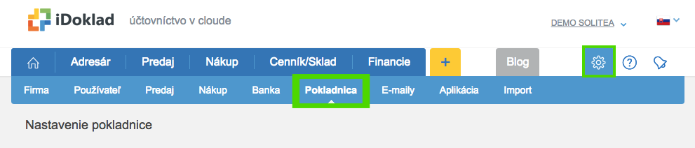 iDoklad - Nastavenie Pokladnica