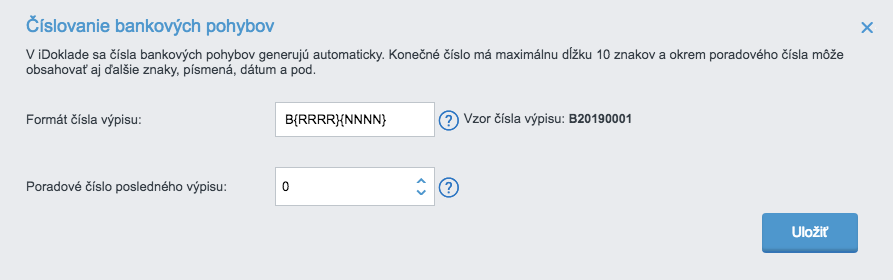 V Číslovaní bankových pohybov si nastavíte formát výpisov, ktorý následne uvidíte v sekcii Financie – Banka. Využiť môžete zástupné znaky napríklad pre rok a mesiac. Zobrazujú sa tu všetky transakcie z účtu, aj tie nespárované.