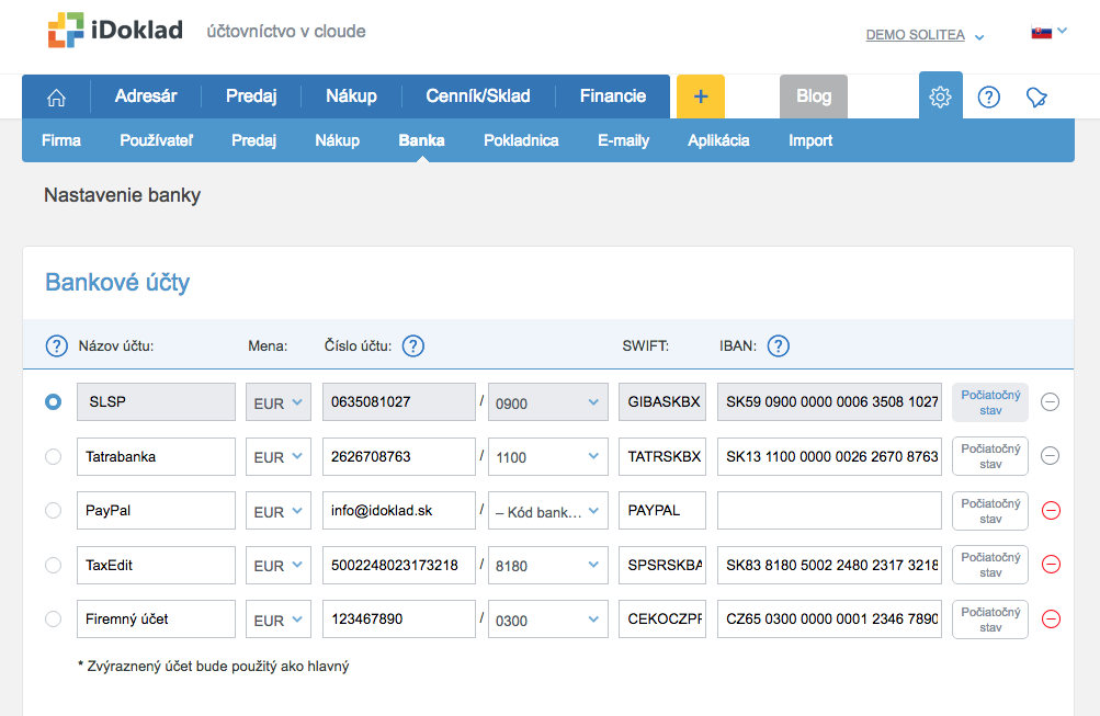 iDoklad Nastavenie - Banka