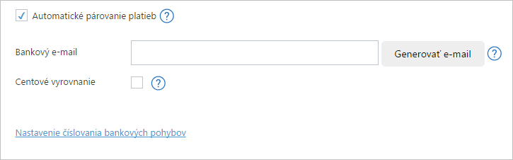 - V časti Párovanie bankových výpisov je treba najskôr zaškrtnúť pole Automatické párovanie platieb – potom sa zobrazia ďalšie možnosti voľby.