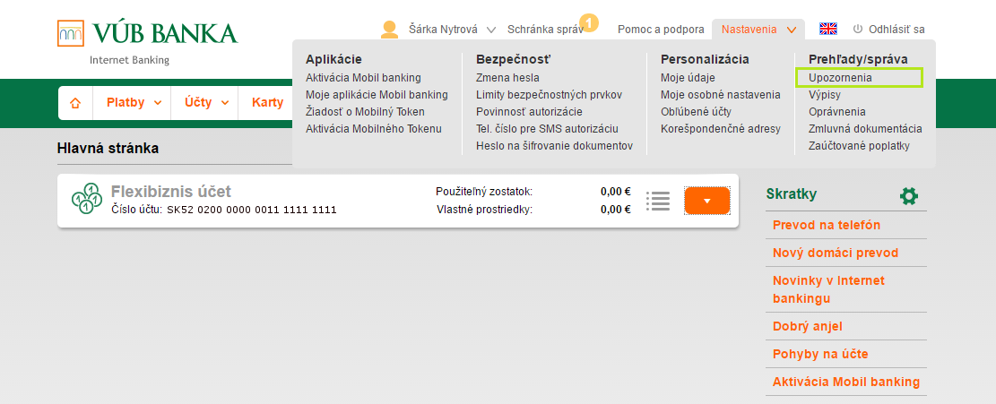 - V menu Nastavenia – Prehľady/správa vyberte možnosť Upozornenia.