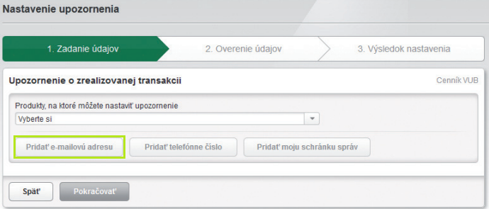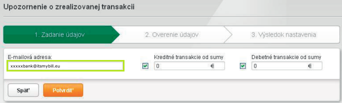- Pomocou tlačidla Generovať e-mail si vytvorte adresu, na ktorú bude banka správy o bankových pohyboch zasielať.