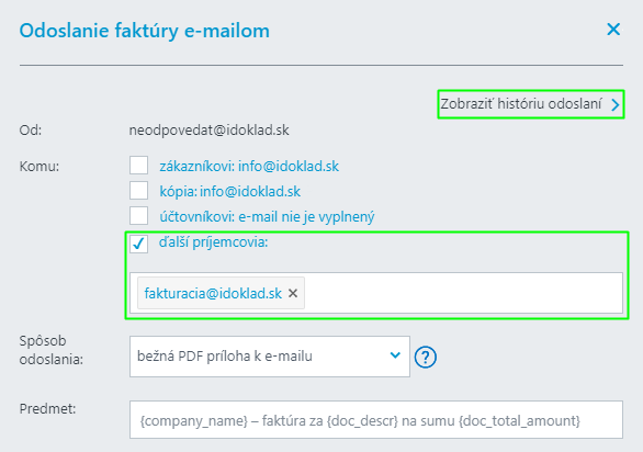 Viac adries môžete využiť aj pri odosielaní ďalších dokladov, upomienok či cenových ponúk. Pri odosielaní e-mailu sa tieto adresy automaticky vyplnia.