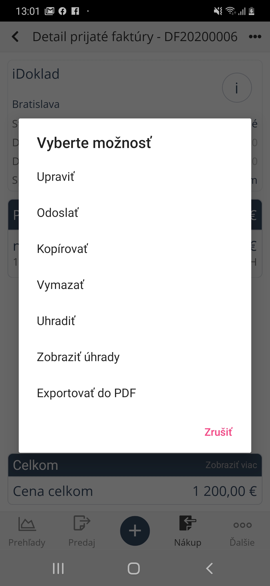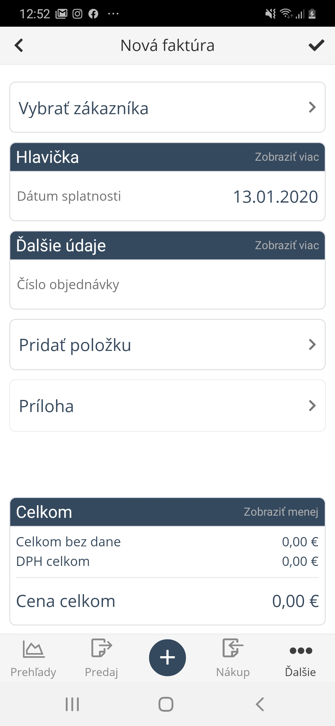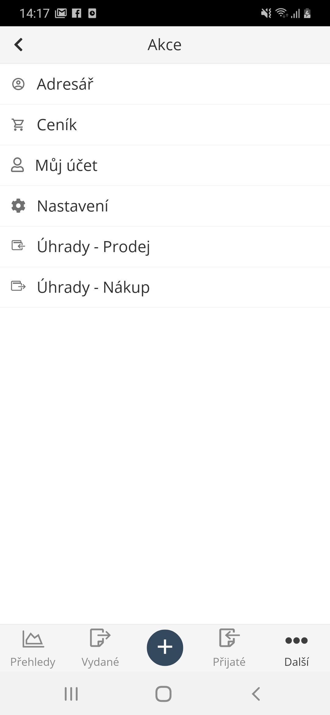Pretože sme do menu pridali Prijaté faktúry a záložky s úhradami, museli sme rozšíriť menu. Po kliknutí na Ďalšie sa vám zobrazia všetky možnosti. Už čoskoro medzi ne pribudne aj záložka Zálohové faktúry, takže nás sledujte. Včas vám dáme vedieť vo webovej aplikácii, ale aj na Facebooku.