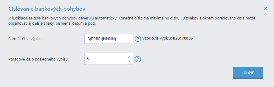 - Ak chcete, môžete kliknúť na odkaz Nastavenie číslovania bankových pohybov. Tu si nastavíte, akým spôsobom sa budú pohyby číslovať. Ak v tomto nastavení nič nezmeníte, čísla pohybov sa generujú automaticky.