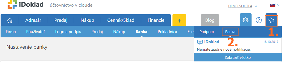 - Nastavenie celej záložky Banka dokončíte tlačidlom Uložiť a prejsť do banky.