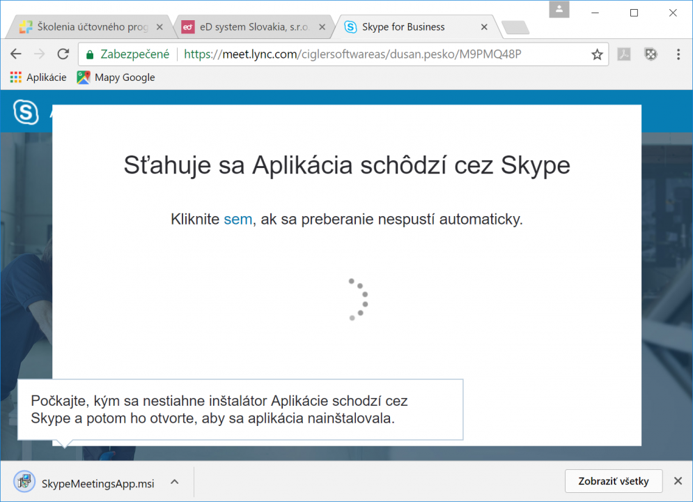 - Do počítača sa Vám stiahne Aplikácia schôdzí cez Skype.