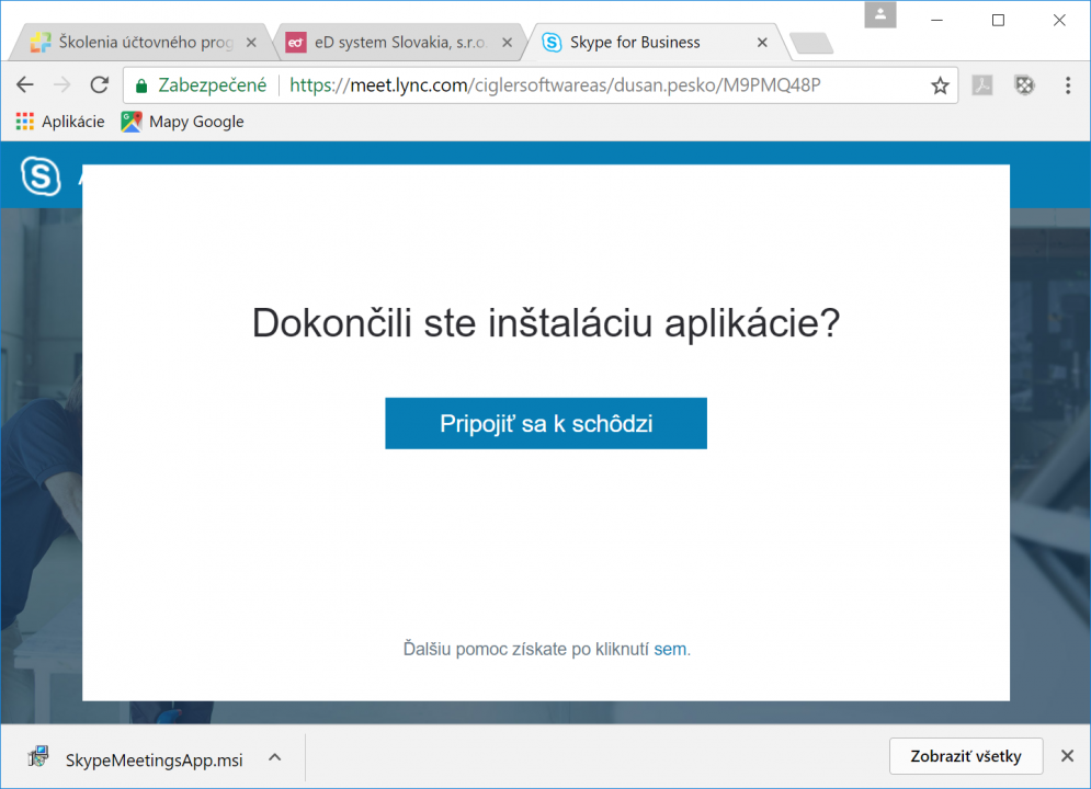 - Po nainštalovaní aplikácie sa môžete pripojiť k schôdzi cez Váš internetový prehliadač.
