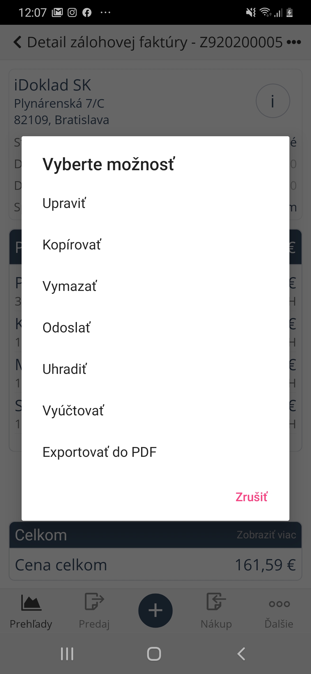 Vďaka najnovšej aktualizácii mobilnej aplikácie môžete zálohové faktúry jednoducho obsluhovať aj z inteligentného telefónu (ak máte niektoré z platených predplatných iDokladu).