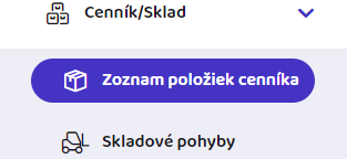 Zoznam položiek cenníka slúži na evidenciu všetkých skladových a neskladových položiek.