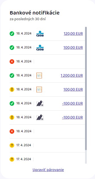 - tento typ bankovej notifikácie nevieme spracovať. Skontrolujte nastavenia vo vašej banke.