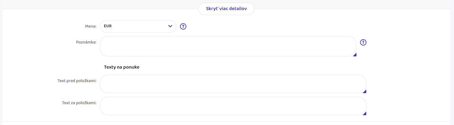 - Číslo objednávky/zmluvy – Volitelne môžete uviesť číslo objednávky alebo zmluvy pre túto ponuku.