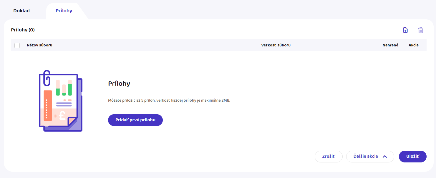 Skopírovať link SkopírovanéK cenovej ponuke v iDoklade pridáte prílohu pomocou záložky v hornej časti stránky. Môžete pripojiť až 5 príloh, veľkosť každej z nich je maximálne 2 MB.