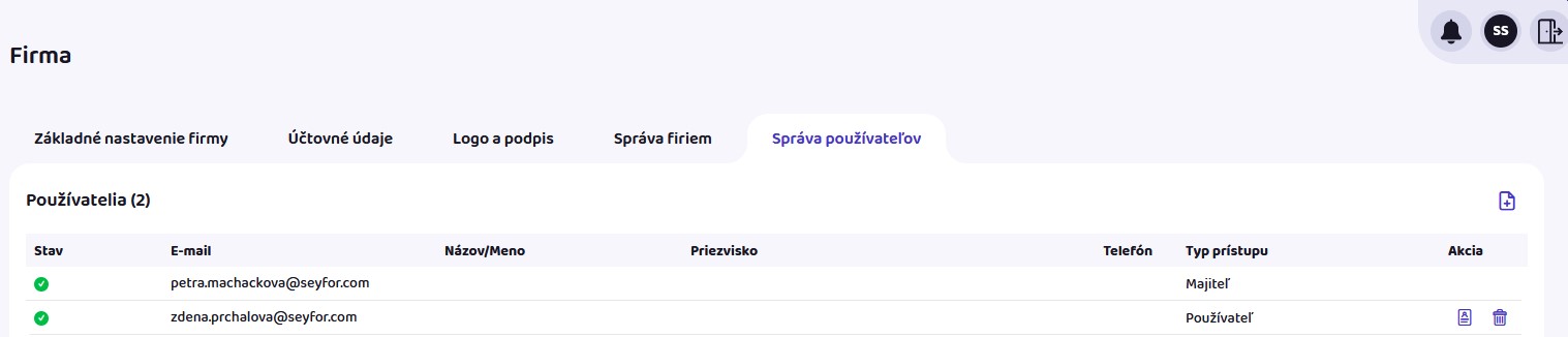 • Do agendy – firmy musí pôvodný majiteľ nového majiteľa pridať ako používateľa a tento musí pozvanie potvrdiť a prijať.
