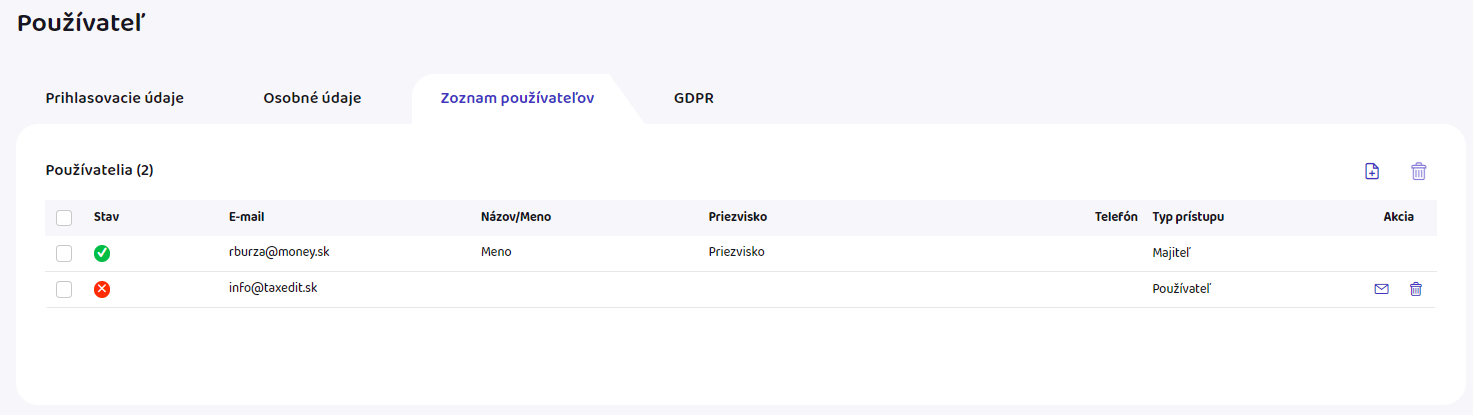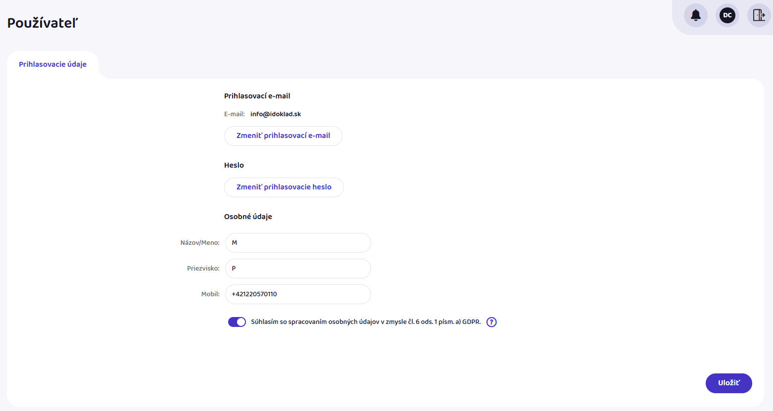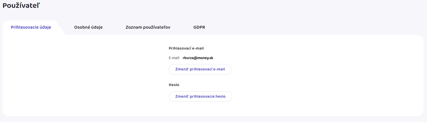 Skopírovať link SkopírovanéNastavenie používateľa vykonáte kliknutím v ľavom menu na Nastavenie → Používateľ.