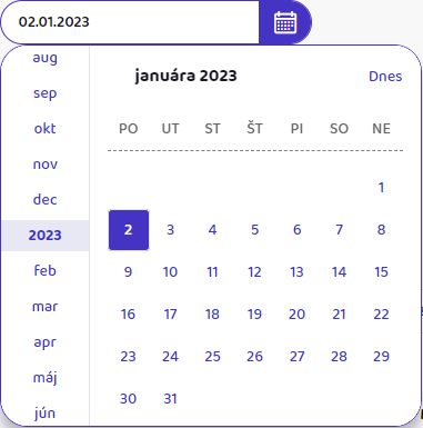 Doplnenie dátumu – všetky polia, do ktorých sa má doplniť nejaký kalendárny dátum, sú opatrené ikonkou, pomocou ktorej rozbalíte kalendár určený na výber dátumu. Kalendárom môžete listovať medzi mesiacmi a rokmi – listovanie vykonávate otáčaním kolieska myši po nabehnutí kurzora na ľavú stranu kalendára.