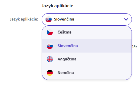 V spodnej časti aplikácie sa môžete zmeniť aj jazyk aplikácie – voliť môžete zo slovenčiny, češtiny, angličtiny a nemčiny. Zmena predstavuje len zmenu jazyka aplikácie, nie legislatívy.