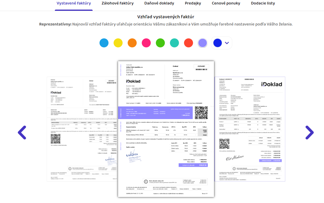 Tieto úpravy nájdete v záložke Vzhľad a tlač dokladov. Vzhľad si môžete nastaviť pre jednotlivé typy dokladov rôzne. V prípade voľby vzhľadu s farebnými prvkami môžete meniť aj farbu týchto prvkov.