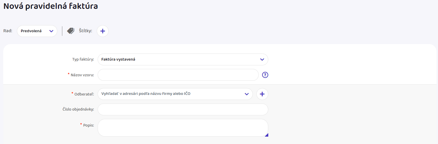 Návod, ako začať zakladať nový vzor pravidelnej faktúry, nájdete v predchádzajúcej časti pomocníka.